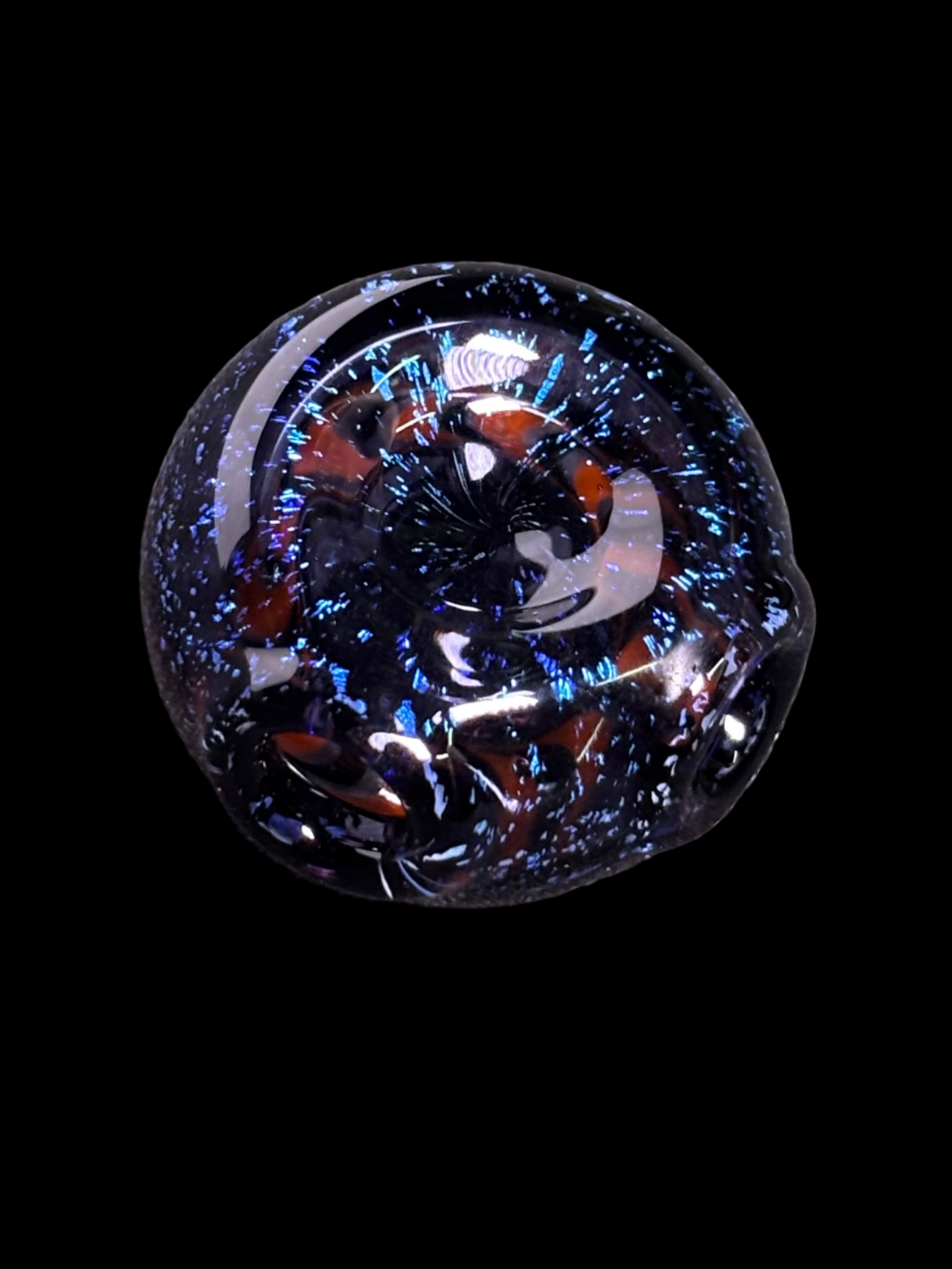 Skate wheel pendant. Orange graphic with blue dicro wheel. 28mm
